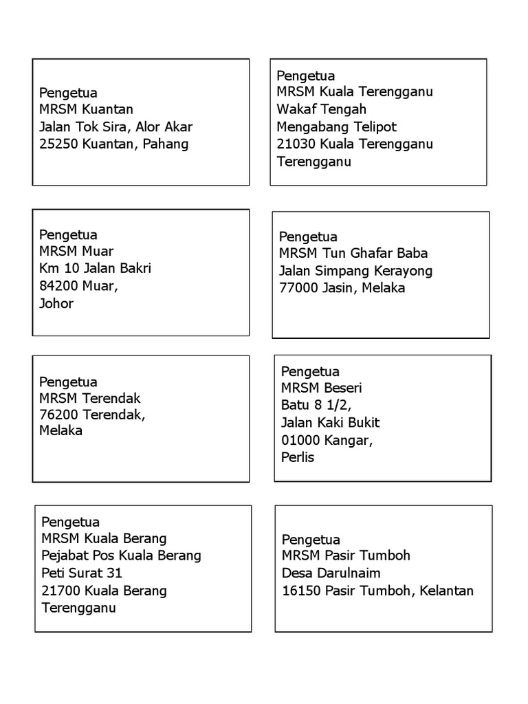 MRSM di Kelantan Terengganu Pahang Johor Melaka Negeri Sembilan Selangor Perak PPinang Kedah Perlis Sarawak dan Sabah untuk rujukan mereka yang memerlukan. Iibrahimmailmaragovmy MRSM Tawau Peti Surat 61275 91022 Tawau Sabah Tel. Berikut disenaraikan semua Maktab Rendah Sains MARA MRSM alamat website status dan aliran yang terdapat di seluruh negara.